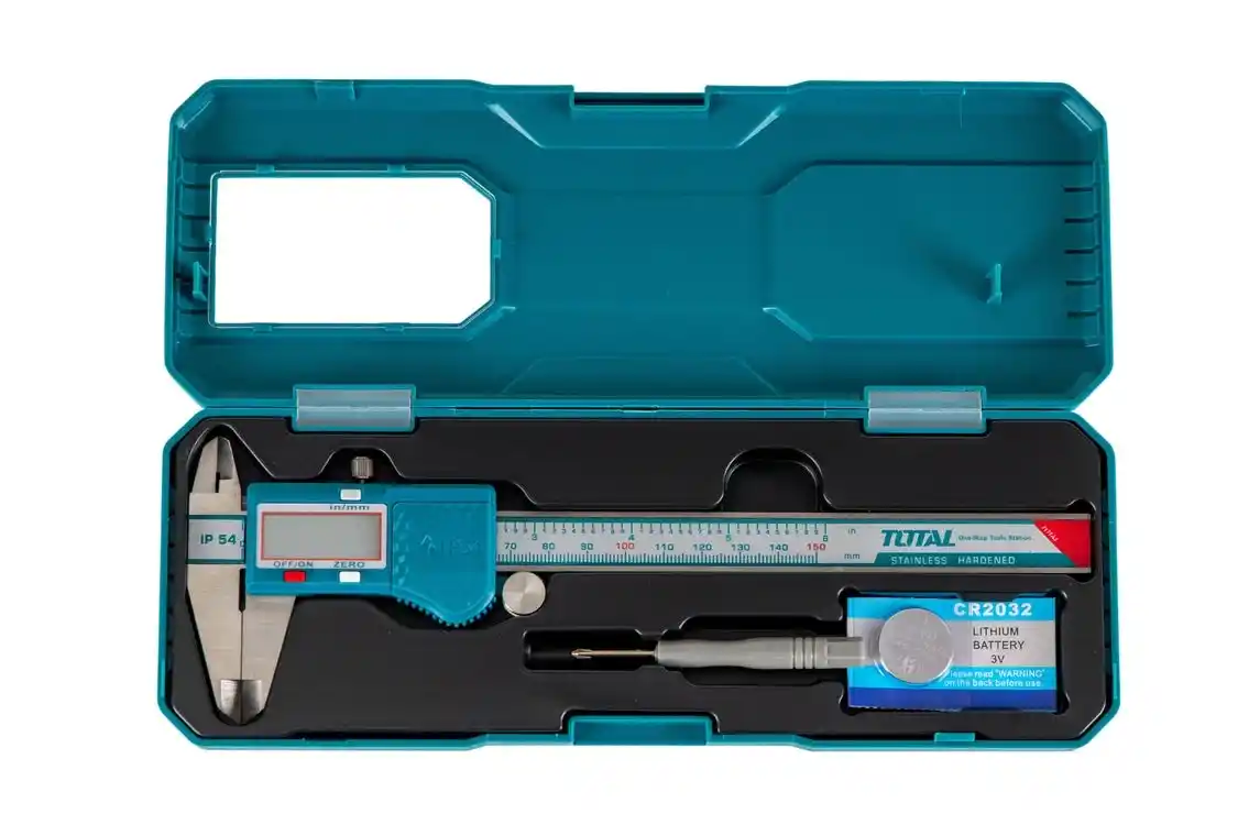 Total TMT321506 Dijital Kumpas , 0-150 mm ölçüm aralığı ve 0,01 mm okuma çözünürlüğüyle hassasiyet ve kullanım kolaylığı sunar. IP54 koruyucu muhafazaya sahip bu kumpas, toz ve sıçramaya dayanıklıdır ve zorlu çalışma ortamları için idealdir. Metrik ve inç sistemleri arasında her pozisyonda dönüşüm fonksiyonu, hızlı ve doğru ölçümler sağlar.