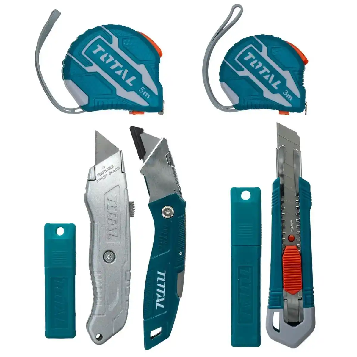 Total TOS23037E Şerit Metre ve Maket Bıçağı Falçata Seti 7 Parça