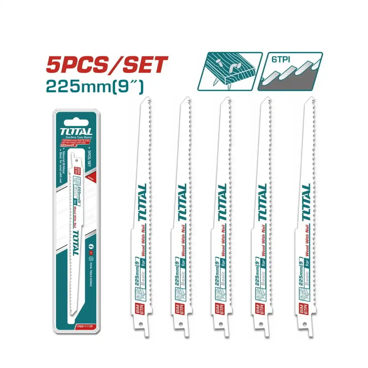 Total TRSB1111DF Çivili Ahşap Kesebilen Tilki Kuyruğu Testere Yedek Bıçağı ile hassas ve dayanıklı bir şekilde kesebilirsiniz.