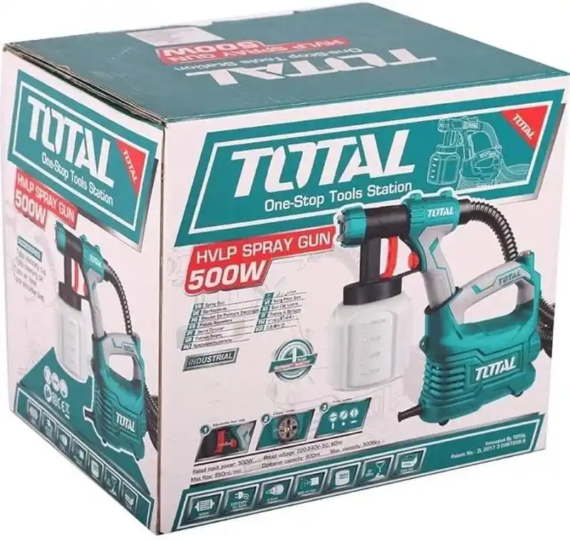 Total TT5006 HVLP elektrikli boya tabancası ile profesyonel boyama standartlarını evinize ve atölyenize taşıyın. 1994'ten bu yana gelen tecrübeyle seçilen, düşük basınç ve yüksek hacim (HVLP) teknolojili çözüm.