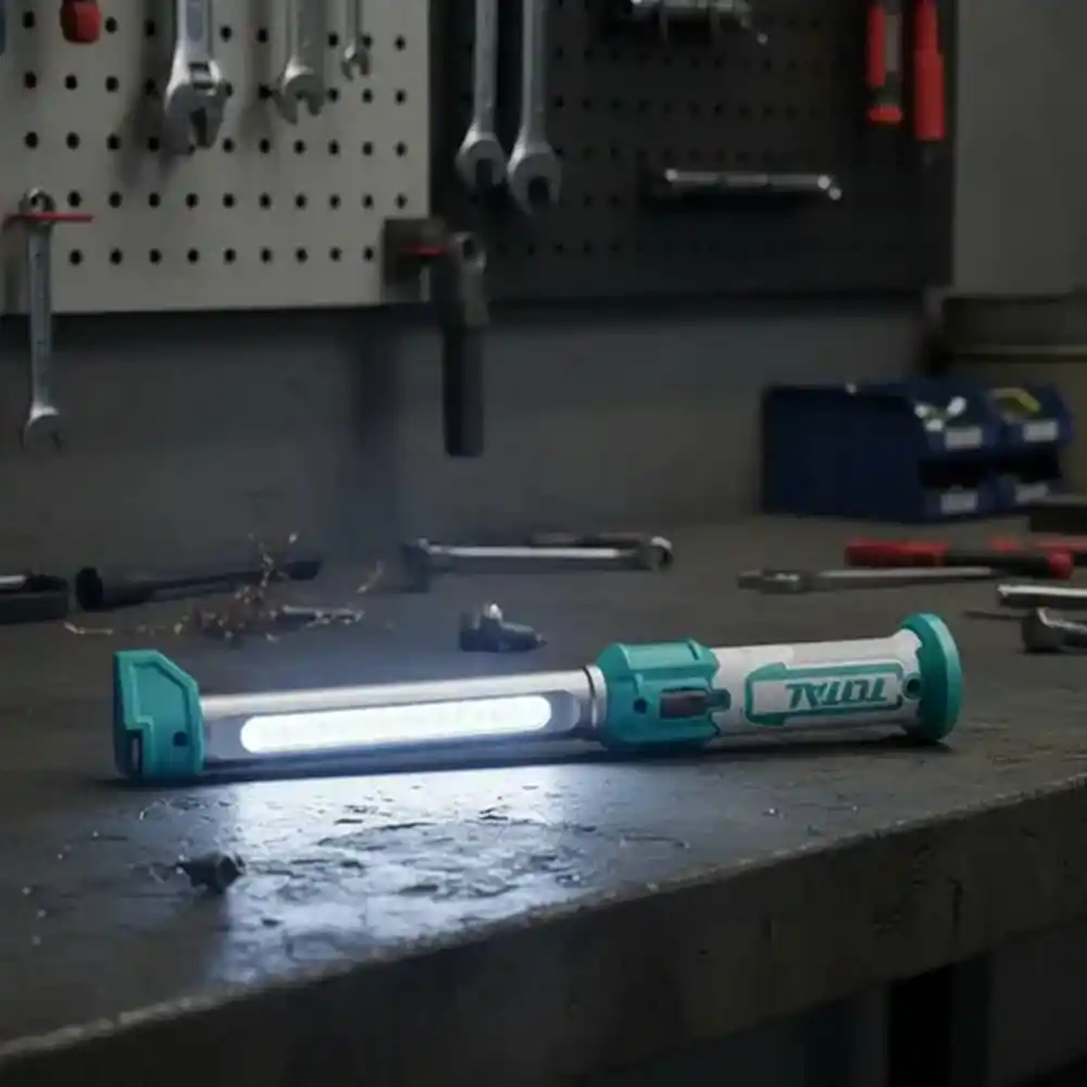 Total TWLI043006, standart el fenerlerinin çözemediği "ayydınlatırken aynı anda iki eli de kullanabilme" problemini, güçlü manyetik tabanı ve 360 derece dönebilen kancasıyla profesyonelce çözer.