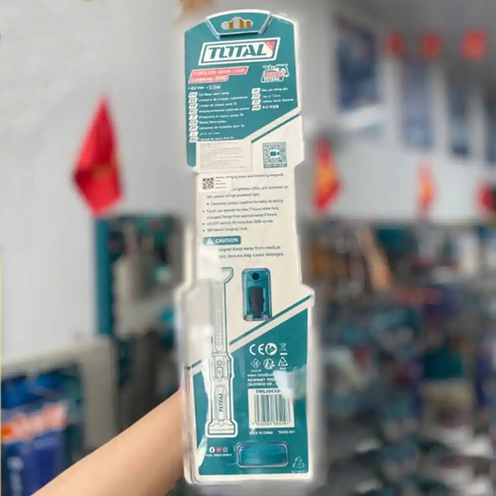 Total TWLI043006, 4V lityum-iyon batarya ile çalışan, üzerinde bulunan güçlü mıknatısı ve askı kancası sayesinde karanlık çalışma ortamlarını eller serbest şekilde aydınlatan taşınabilir bir LED sistemidir.
