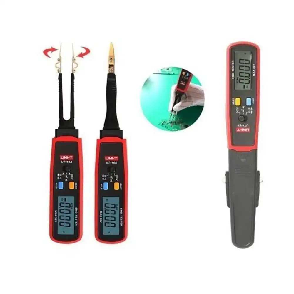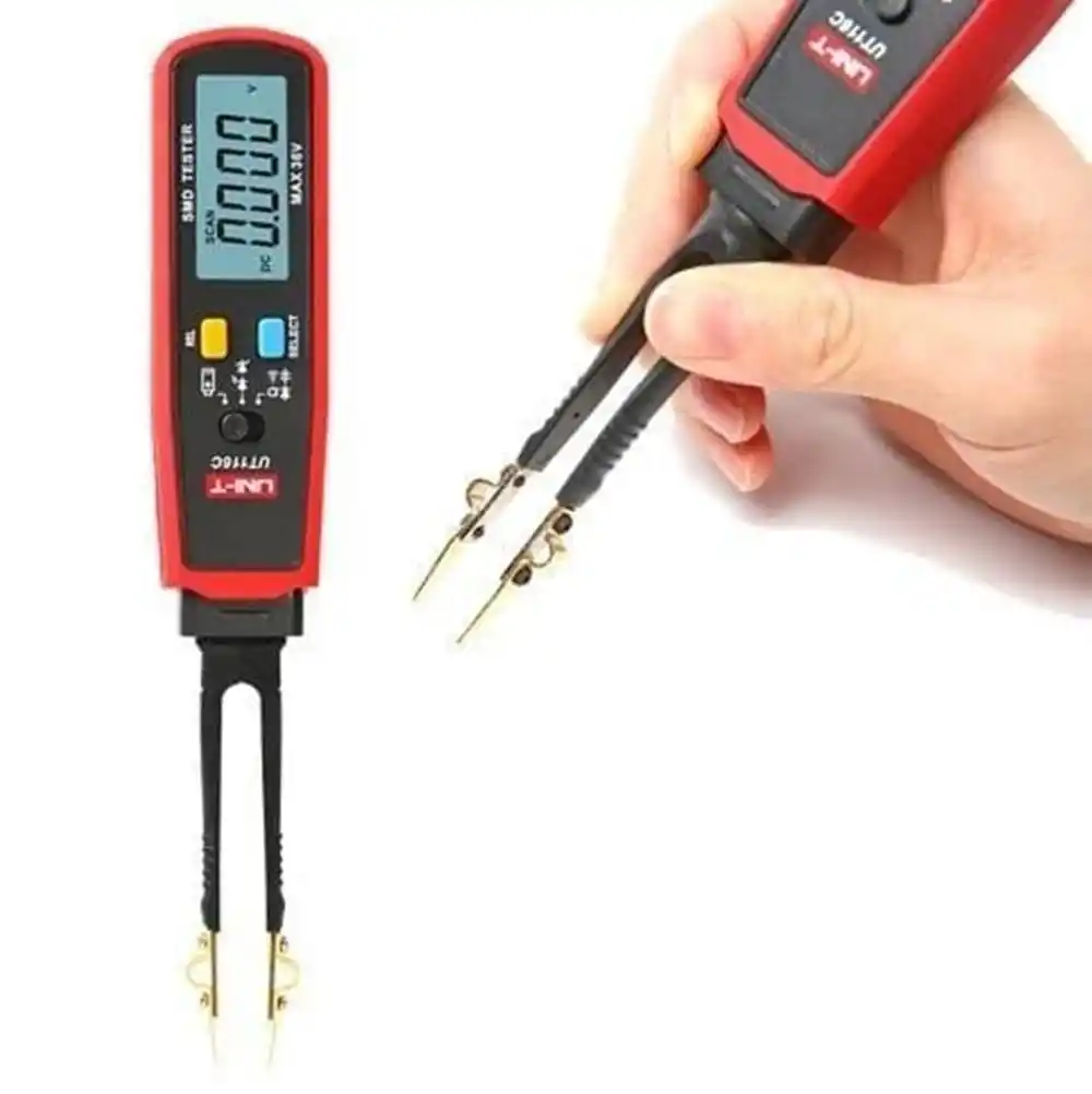 Uni-T UT116C, yüzey montajlı cihazların (SMD) direnç, kapasitans, diyot ve süreklilik değerlerini tek elle ölçmek için tasarlanmış, cımbız formunda gelişmiş bir dijital multimetredir.