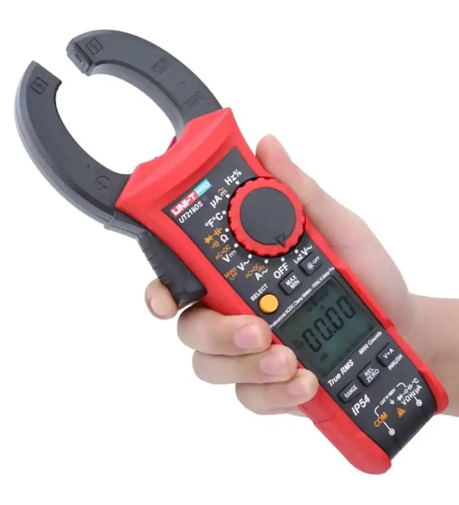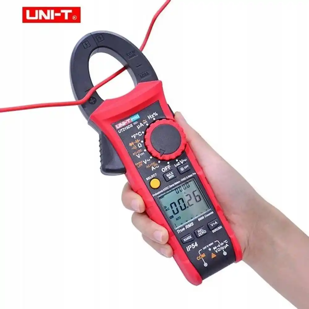 Uni-t UT219DS, zorlu saha koşullarında AC ve DC akımı 600A'e kadar temassız ölçebilen, True RMS teknolojisine sahip, IP54 sertifikalı yüksek dayanımlı bir profesyonel test cihazıdır.