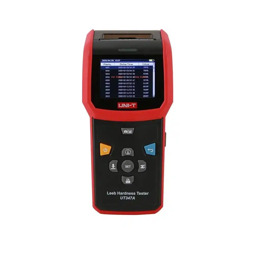 Uni-T UT347A, Leeb dinamik sertlik ölçüm prensibiyle çalışan, metal malzemelerin sertliğini tahribatsız bir şekilde ölçerek HRC, HRB, HB, HV gibi farklı birimlere dönüştüren dijital bir test cihazıdır.