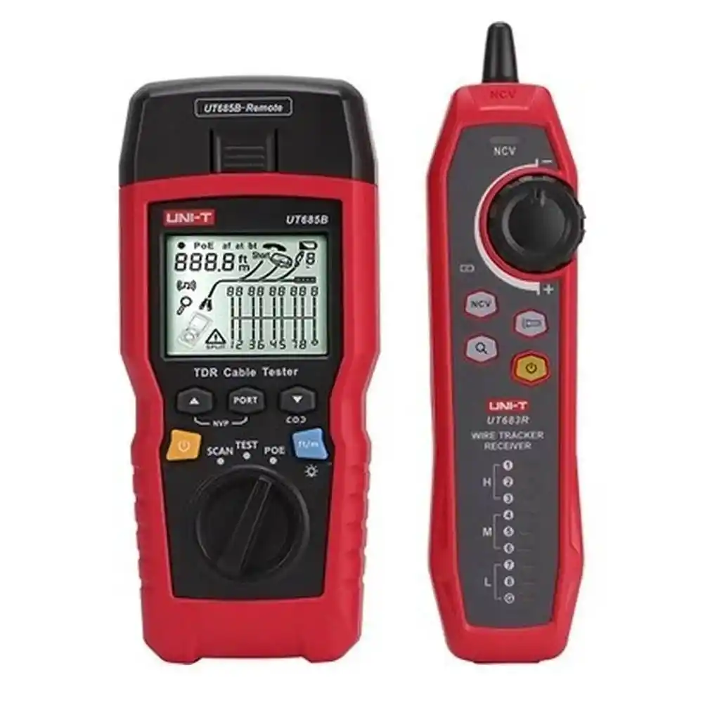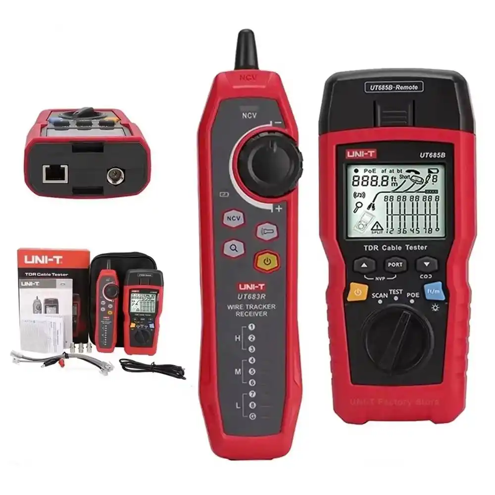Uni-T UT685B, TDR (Zaman Alanlı Yansıma Ölçer) teknolojisini kullanarak ağ, telefon ve koaksiyel kablolardaki arıza noktasını, kablo uzunluğunu ve PoE durumunu dijital olarak analiz eden profesyonel bir test kitidir.