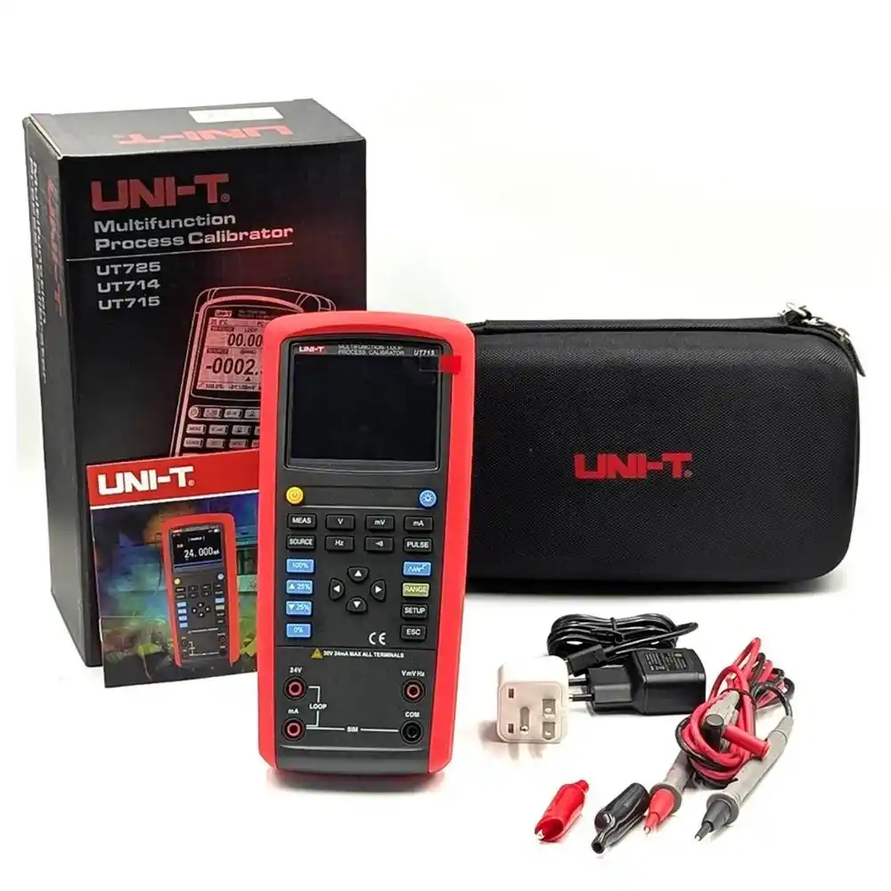 Uni-T UT715, endüstriyel proses kontrol sistemlerinde kullanılan sensörlerin, transmiterlerin ve kontrolörlerin doğruluk testlerini yapmak için tasarlanmış, hem ölçüm (measure) hem de kaynak (source) modunda çalışabilen yüksek hassasiyetli bir proses kalibratörüdür.