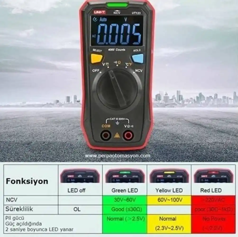 Unit UT123, elektriksel değerleri (voltaj, direnç, süreklilik) otomatik olarak tanıyan, ters ışıklı EBTN LED ekrana ve temassız gerilim algılama (NCV) özelliğine sahip yeni nesil bir akıllı ölçü aletidir.