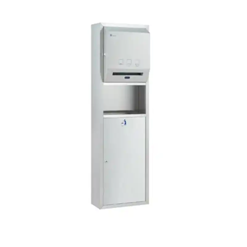 Banyonuzda en üst düzey hijyen teknolojisini estetik bir bütünlükle sunan Xinda GSG63C Sıva Üstü Fotoselli Kağıt Havluluk Çöp Kovası Kombinasyonu, temassız kağıt havlu verici ve çöp kovasını tek bir paslanmaz çelik gövdede birleştirir. Sıva üstü montaj avantajı ve fotoselli çalışma prensibiyle, modern işletmelerin hijyen standartlarını bir adım öne taşır.